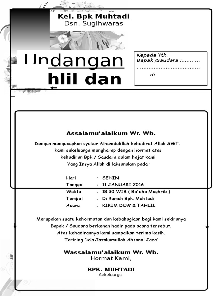 7 Contoh Surat Undangan Tahlil Tahlilan 3 Hari 40 Hari