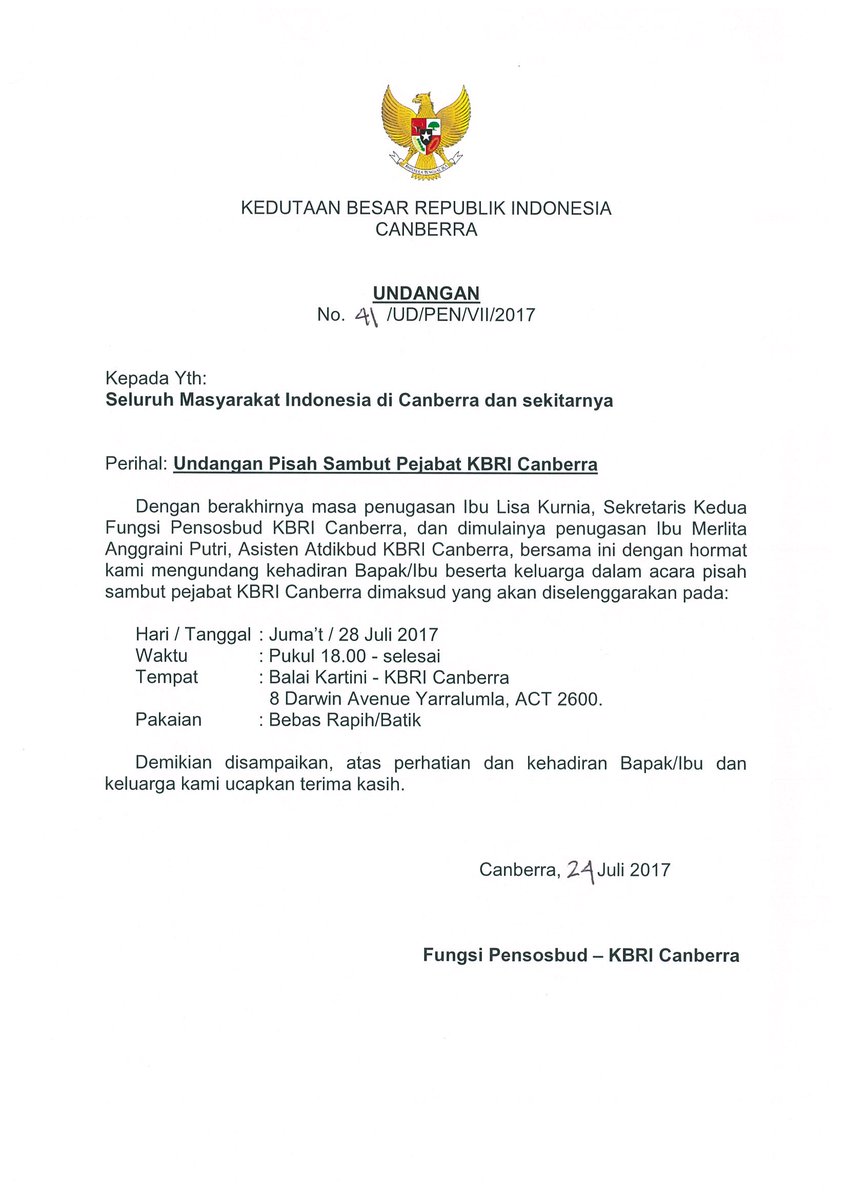 Undangan Pisah Sambut Staf Kbri World Bank Dan Imf