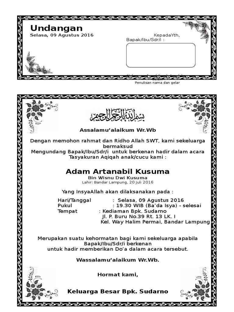 Contoh Undangan Aqiqah Sederhana Word Masudincom